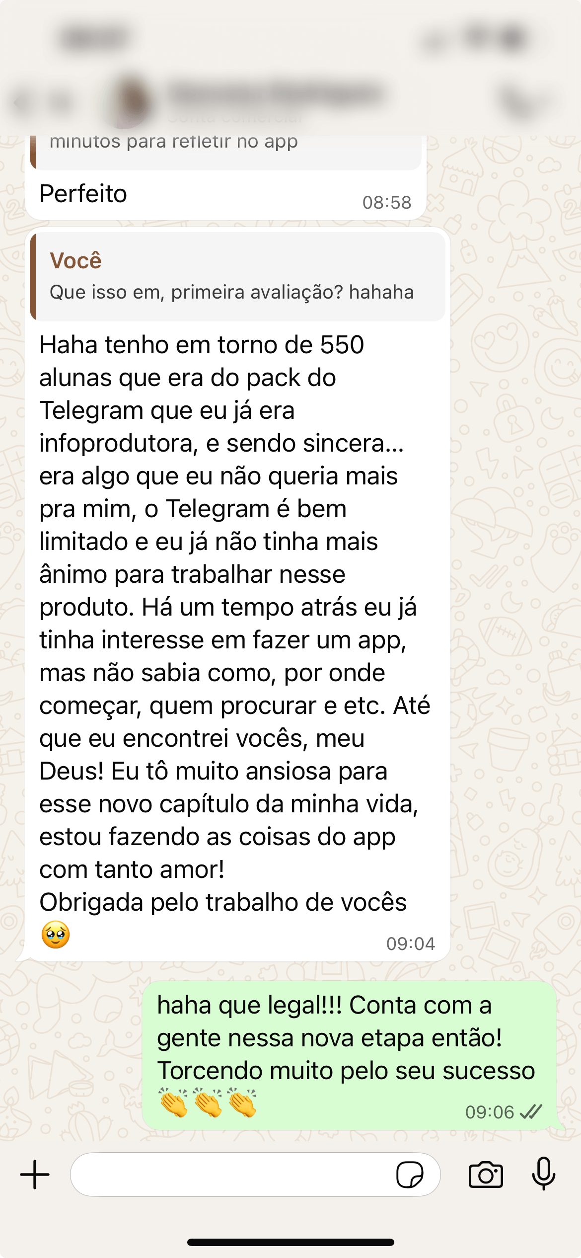 Com um app próprio, você tem um canal direto com sua audiência sem depender de algoritmos ou tráfego pago. Mais vendas para a mesma base, reduzindo drasticamente o custo por aquisição.