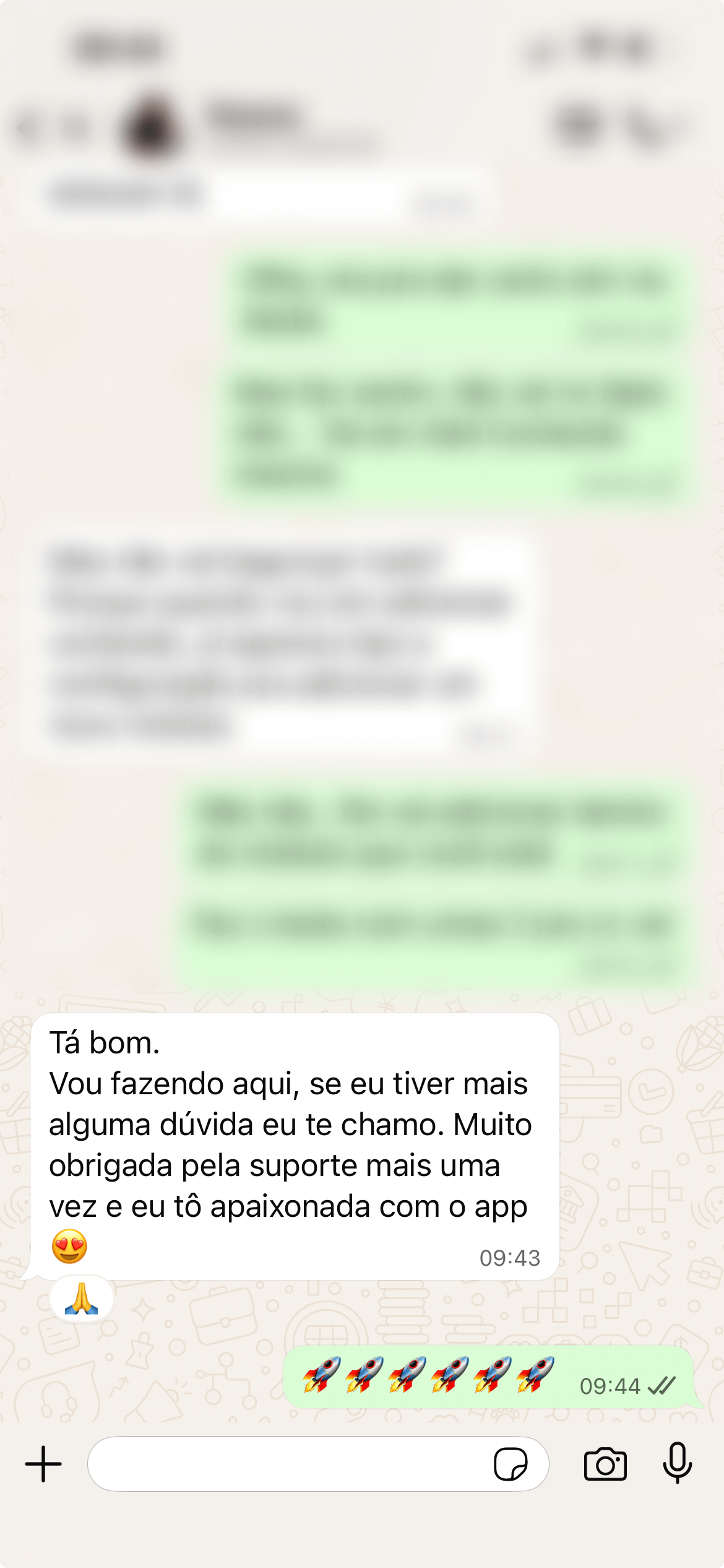 Suporte disponível em horário comercial por chat. Integrações e configurações técnicas são feitas com a ajuda do nosso time, sem custo adicional.